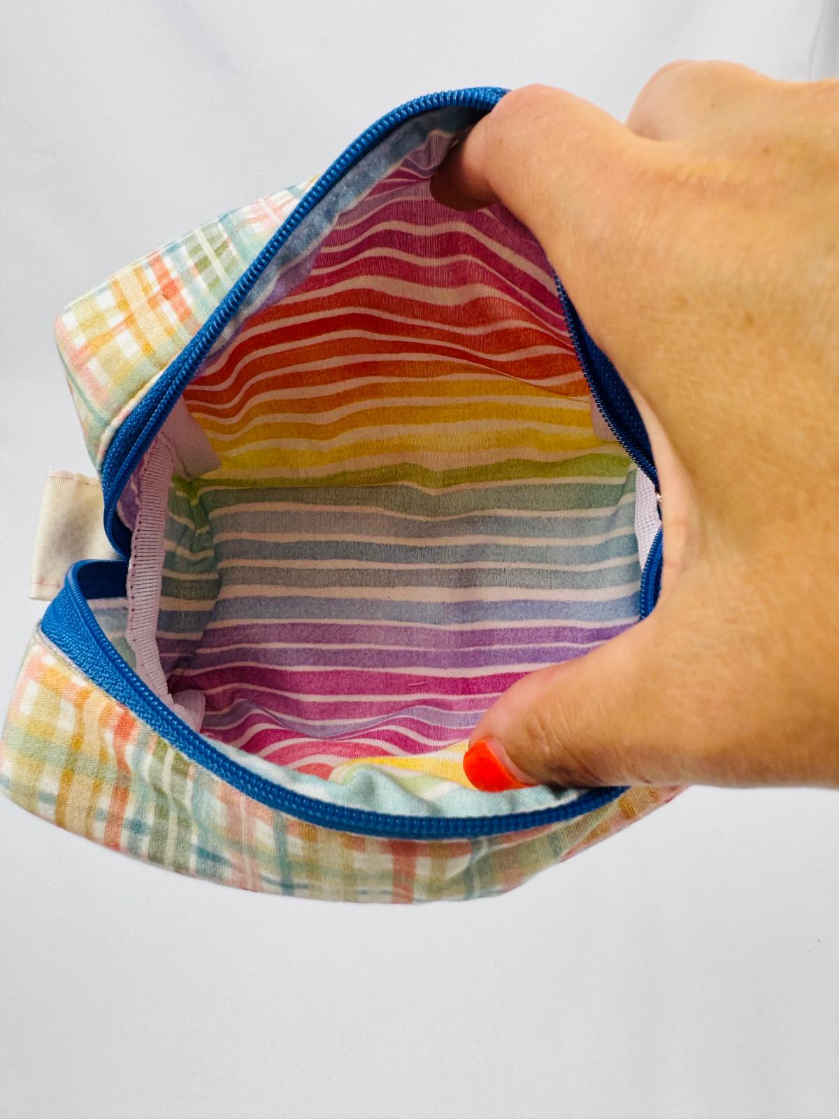 Feita à mão com tecidos suaves e acolchoados, é ideal como nécessaire, estojo ou organizador de viagem. Um toque artesanal com muito amor.